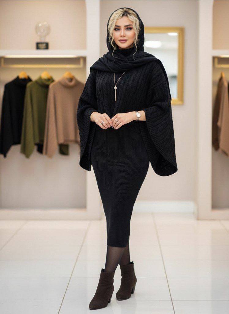 ست بافت زنانه سارافون پانچ