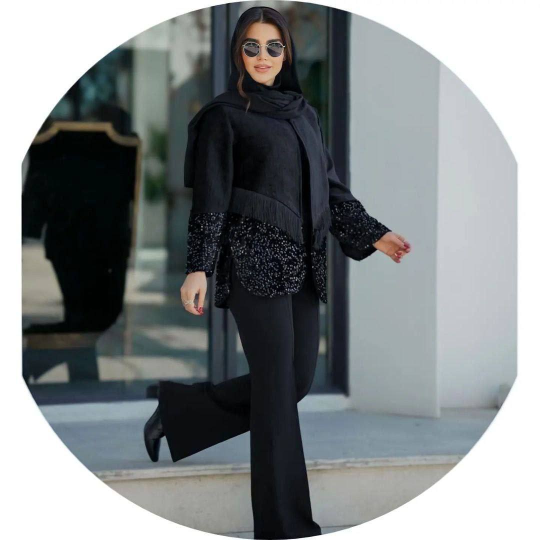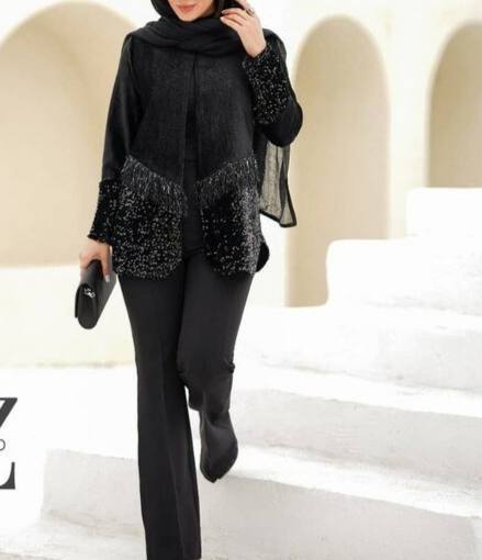 قد کار از یقه ۸۰_دورسینه ۱۱۲_قداستین ۷۰_جنس مخمل شنل درجه یک و طرح پولک دوزی_طرح پولک دوزی روی کت