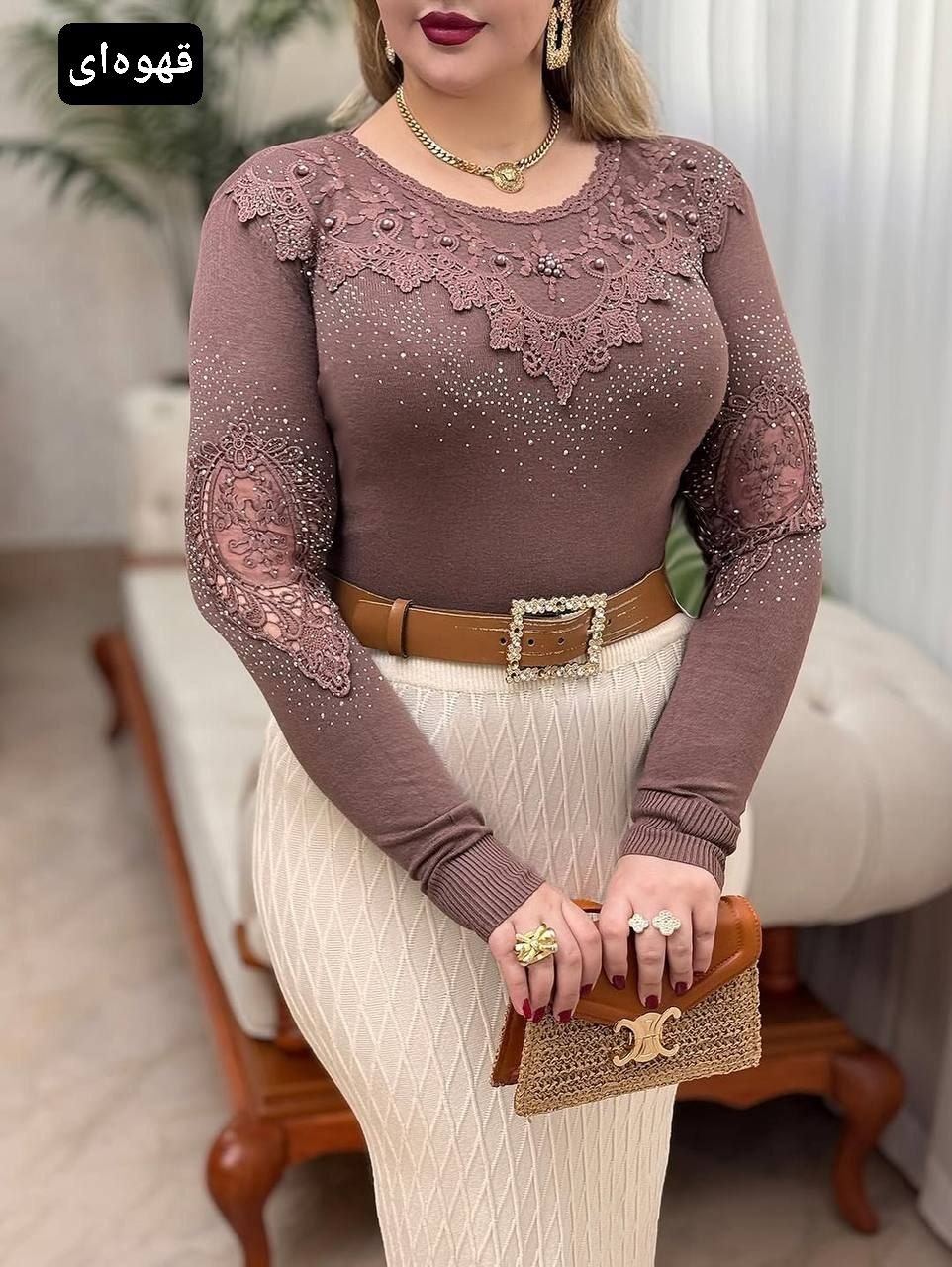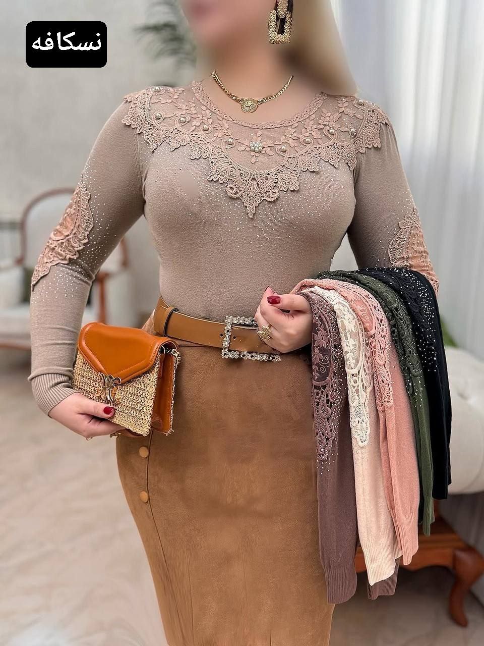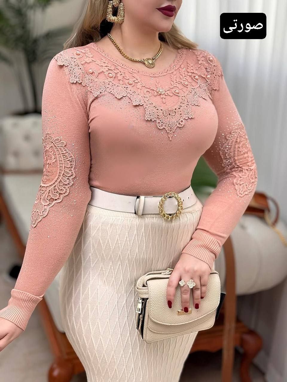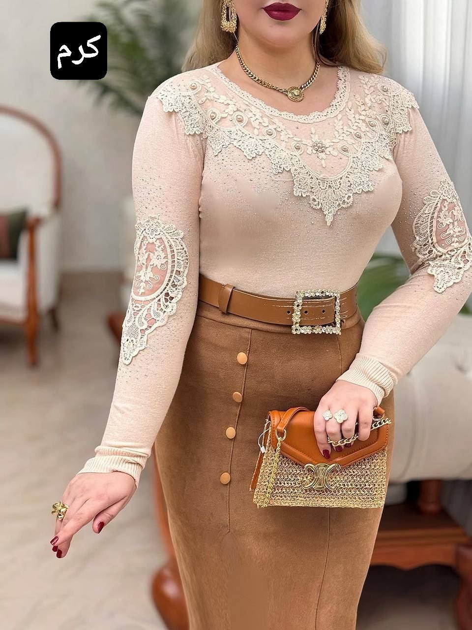 جنس بافت خارجی وارداتی کیفیت عالی تنخور شیک مجلسی گیپور دوزی شده قد۵۷ کشسانی دارد_دورسینه۹۲ با کشسانی۱۱۸_