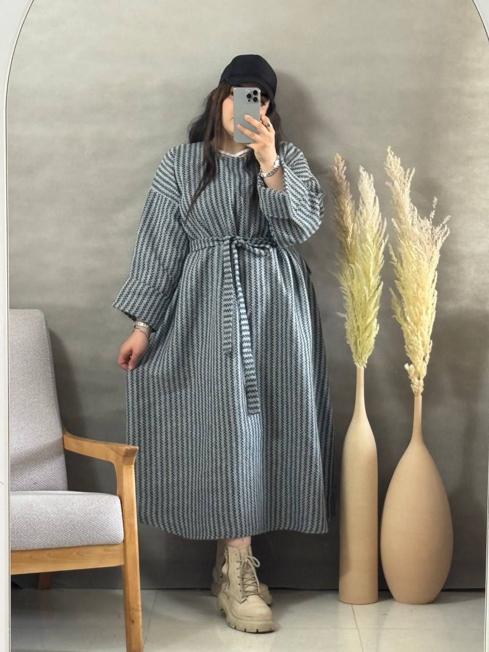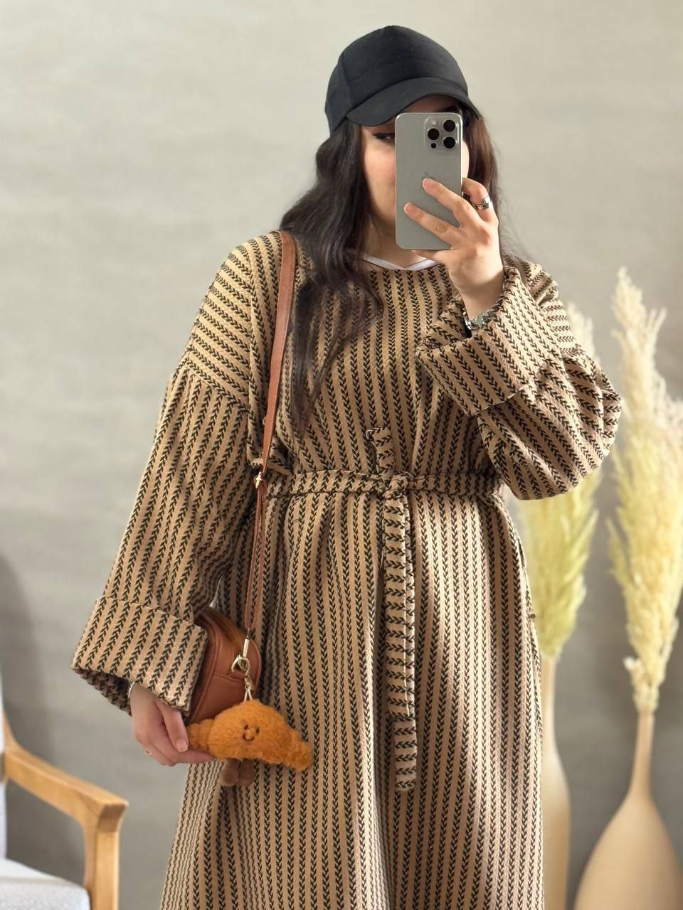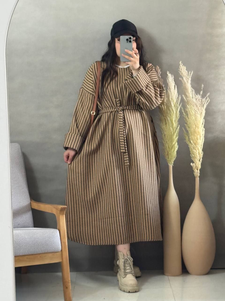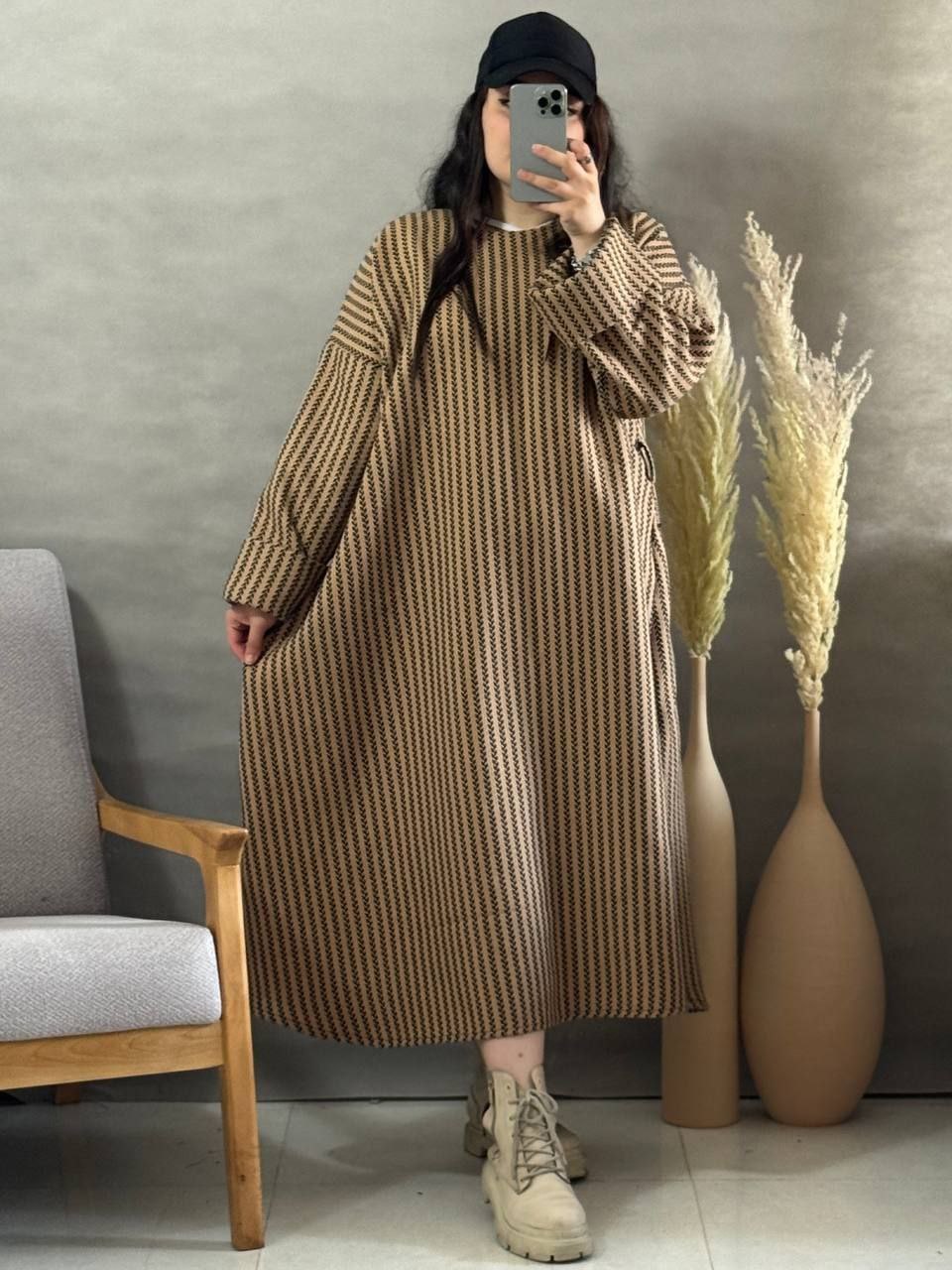 طرح گندمی ترند فری سایز از سایز ۳۸تا۵۰_قدکل ۱۲۵_دورسینه ازاد_قداستین ۵۵_کیفیت پارچه عالی همراه کمربند استین پاکتی