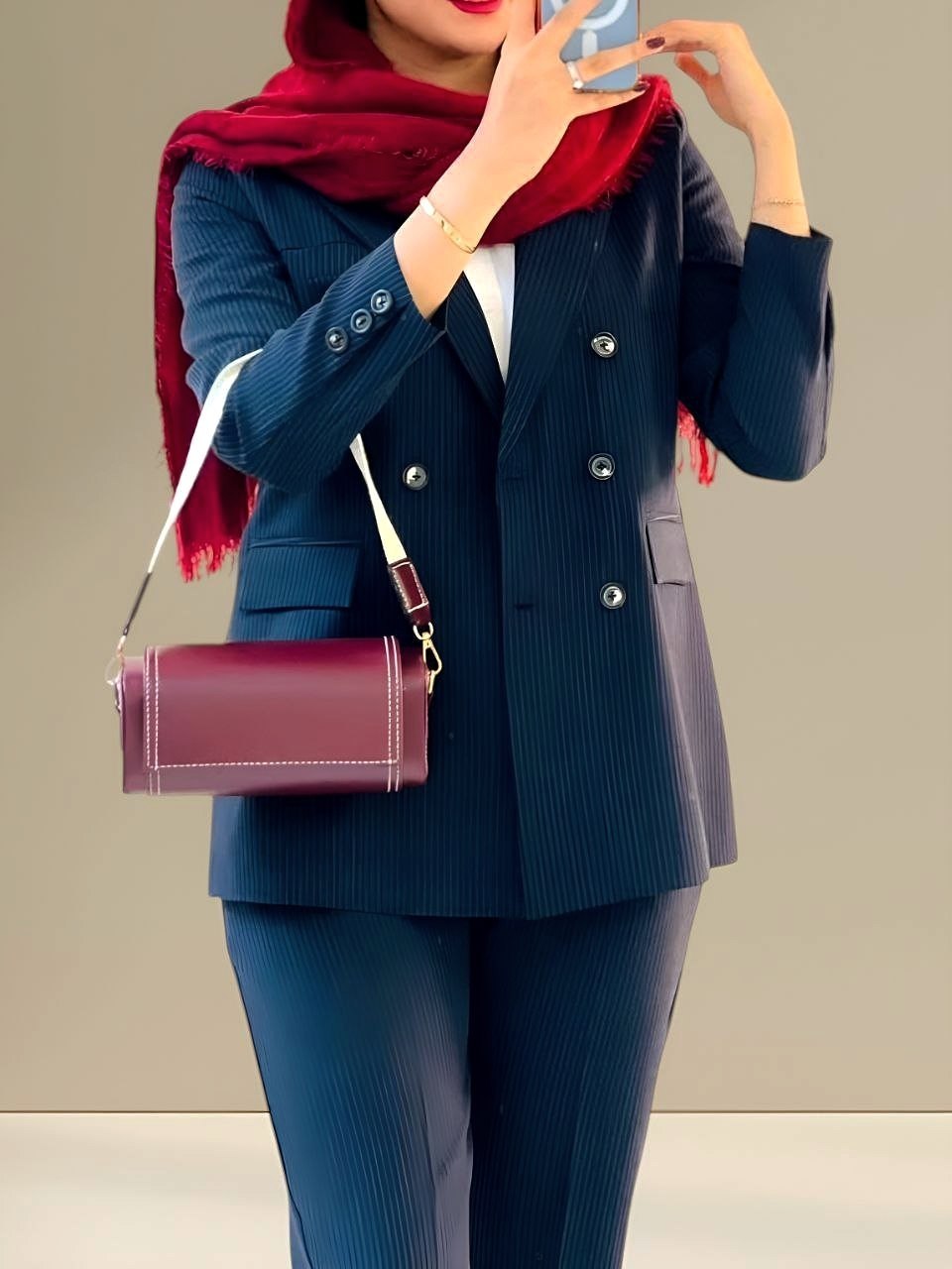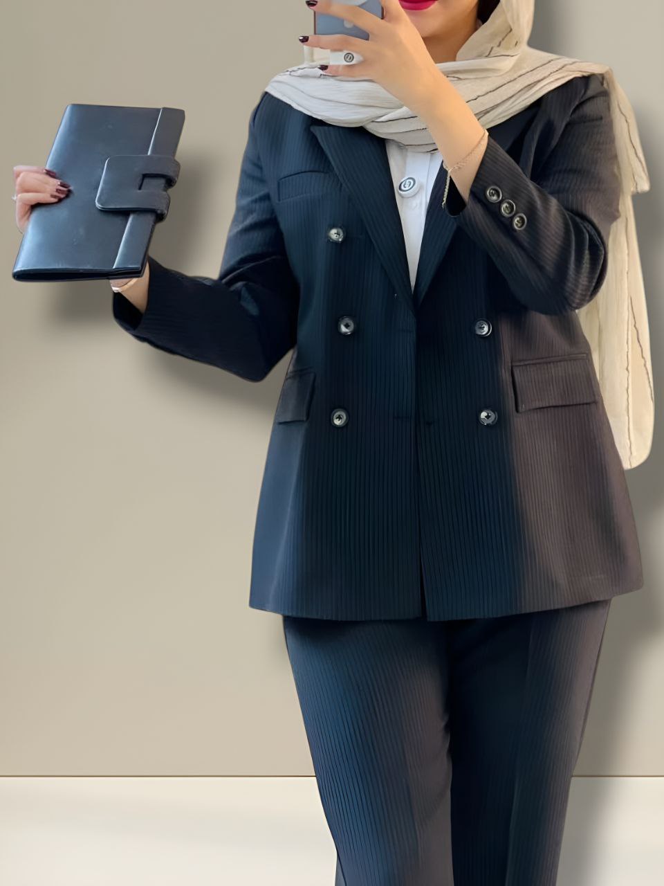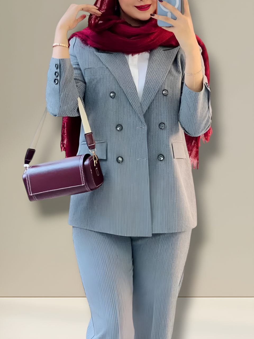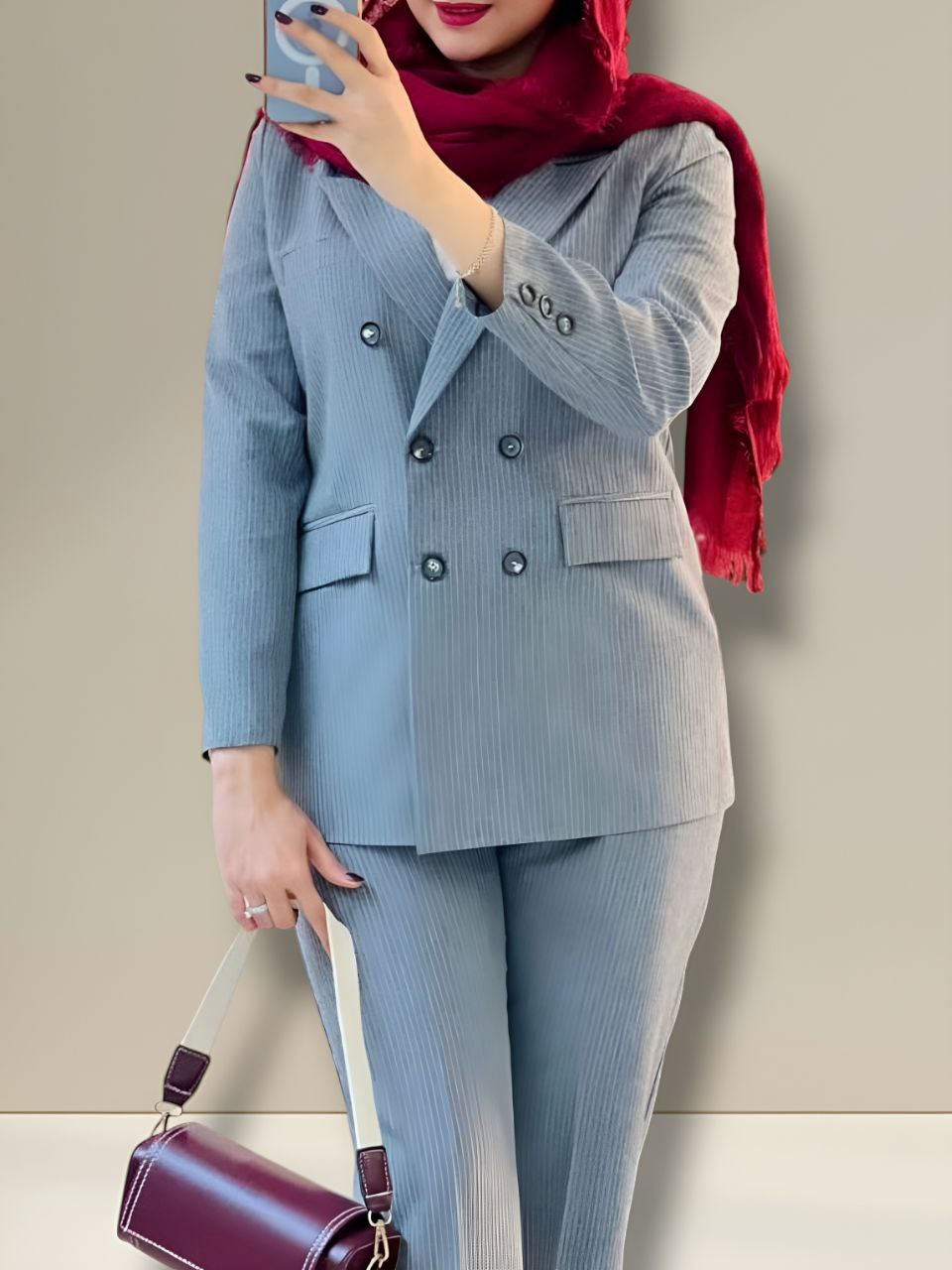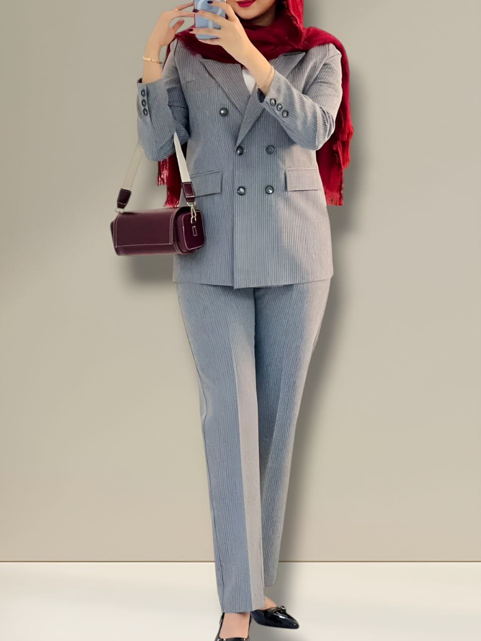 سایز۱ ۳۶تا۴۰ دورسینه ۱۰۰__سایز۲ ۴۲تا۴۶دورسینه ۱۱۰_قدکت۷۵_قدشلوار۱۰۲ پشت کمر شلوار کش دارد شلوار زیپ دکمه دارد