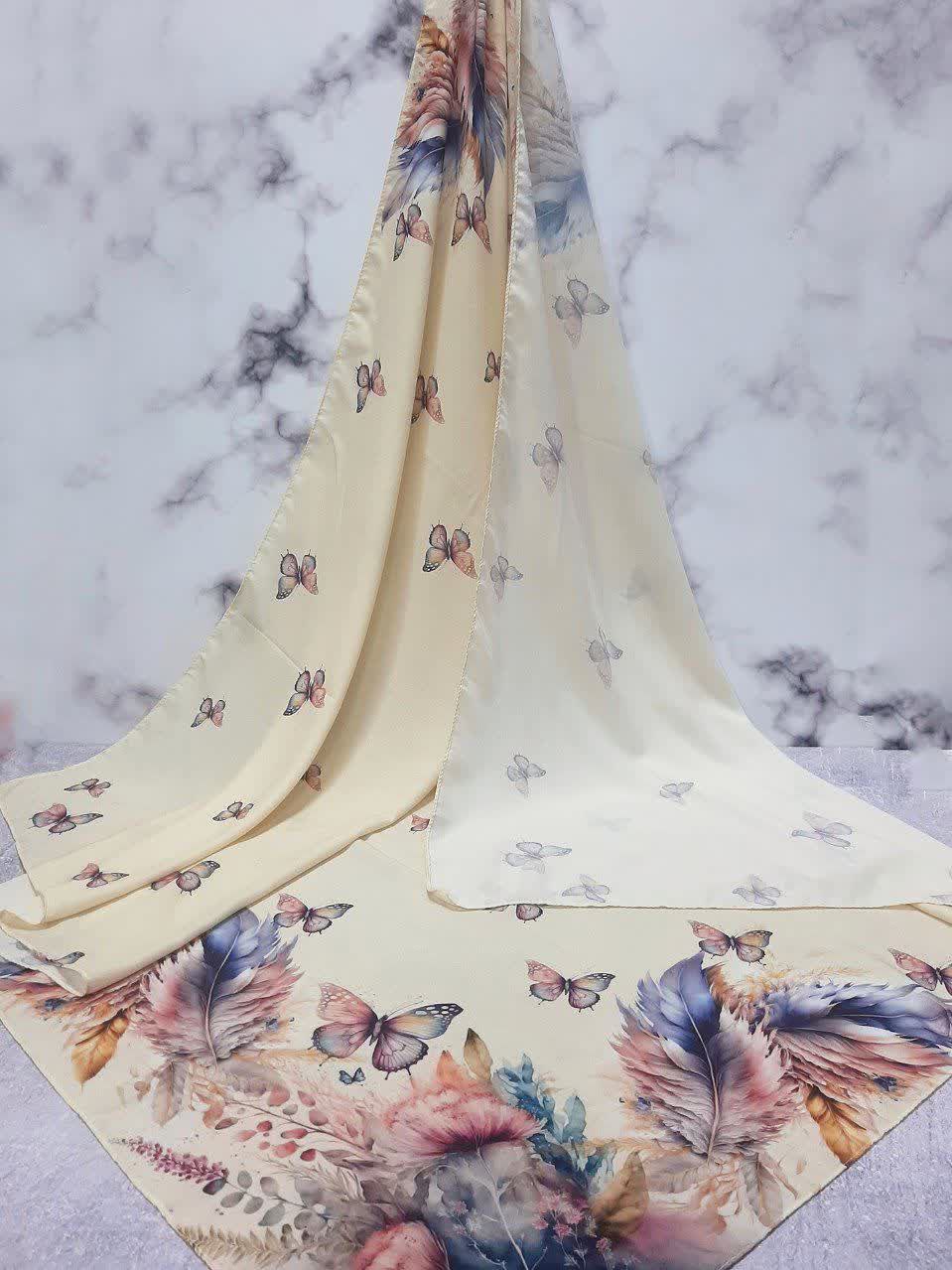 روسری طرح پردیس جنس نخ کاستوم هست نوع دوخت چرخ دوز قواره۱۴۰ ایستایی عالی خیلی ناز و کیوته