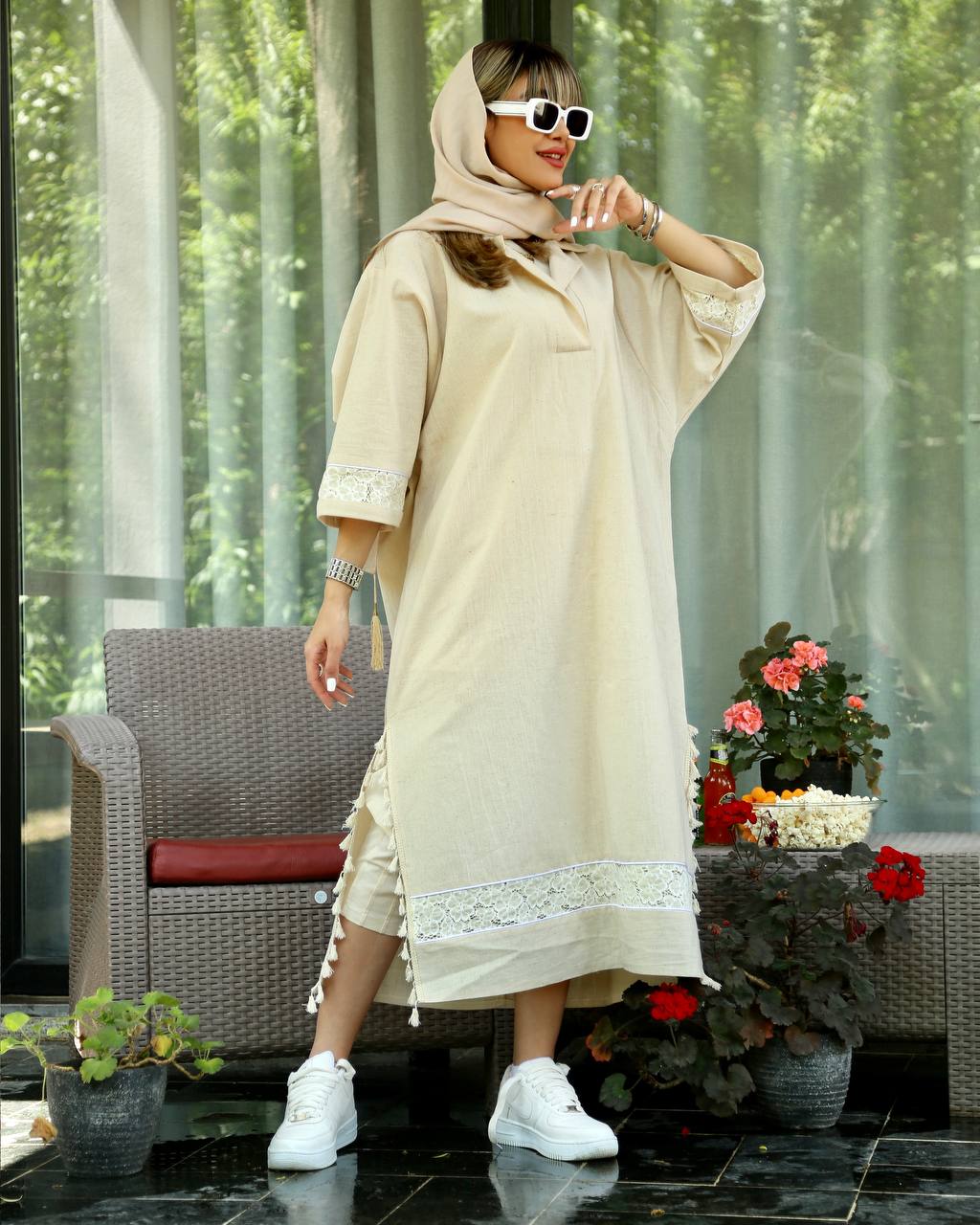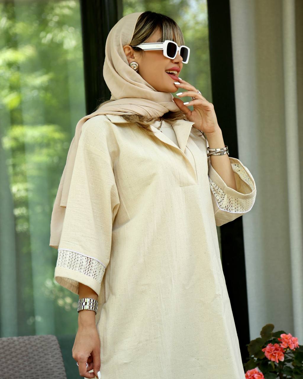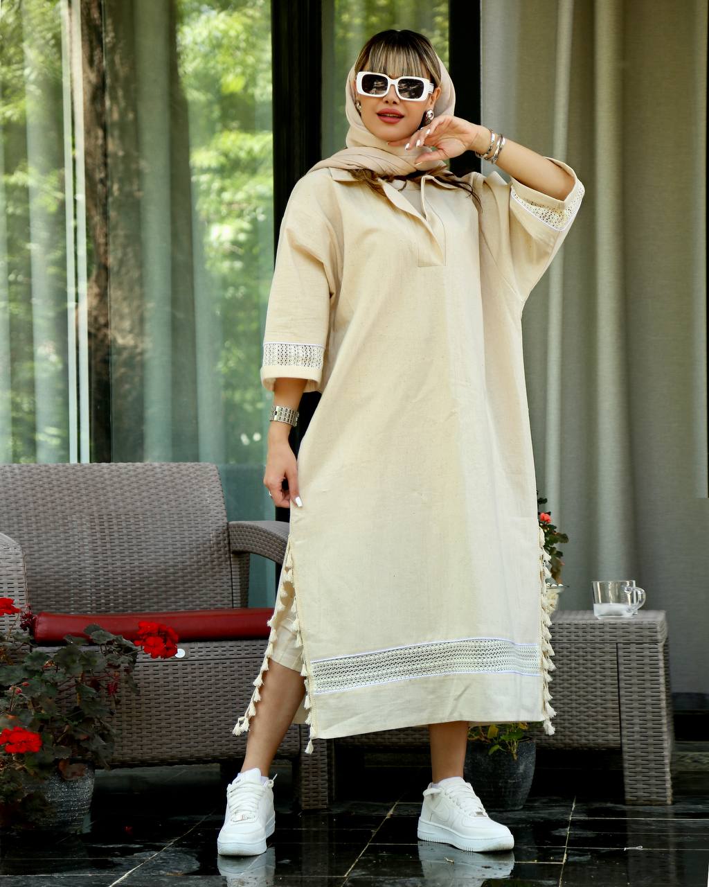 کفتان گیپور دار جنس لینن قد۱۲۵