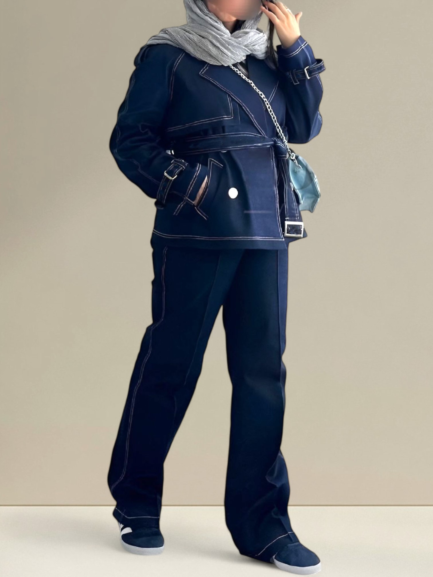 جنس جین پاییزه قدمانتو۷۰_قدشلوار۱۰۵ همراه کمربند تنخور عالی تضمین کیفیت شلوار مدل نیم بگ دورکمر کشسانی۹۸ دورباسن۱۱۸_دورران۶۸