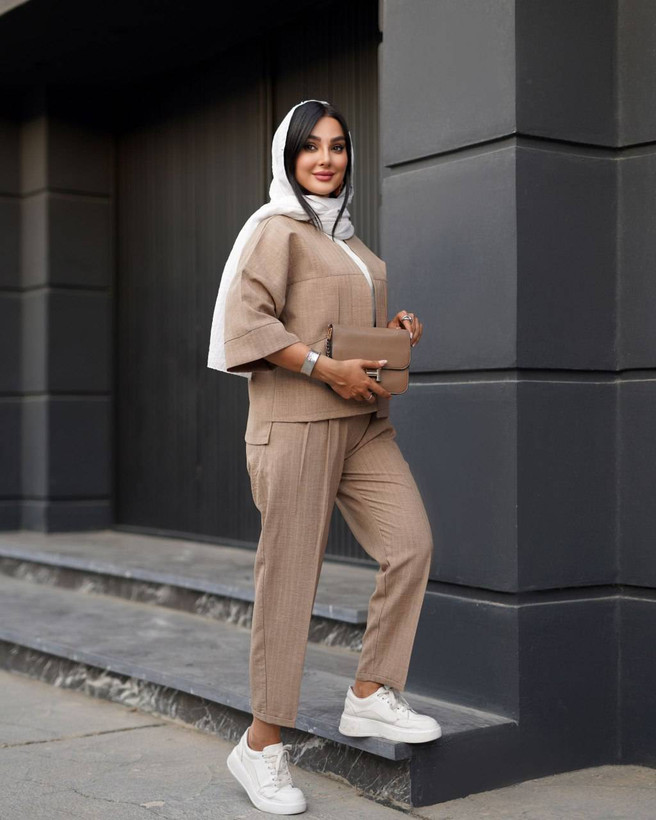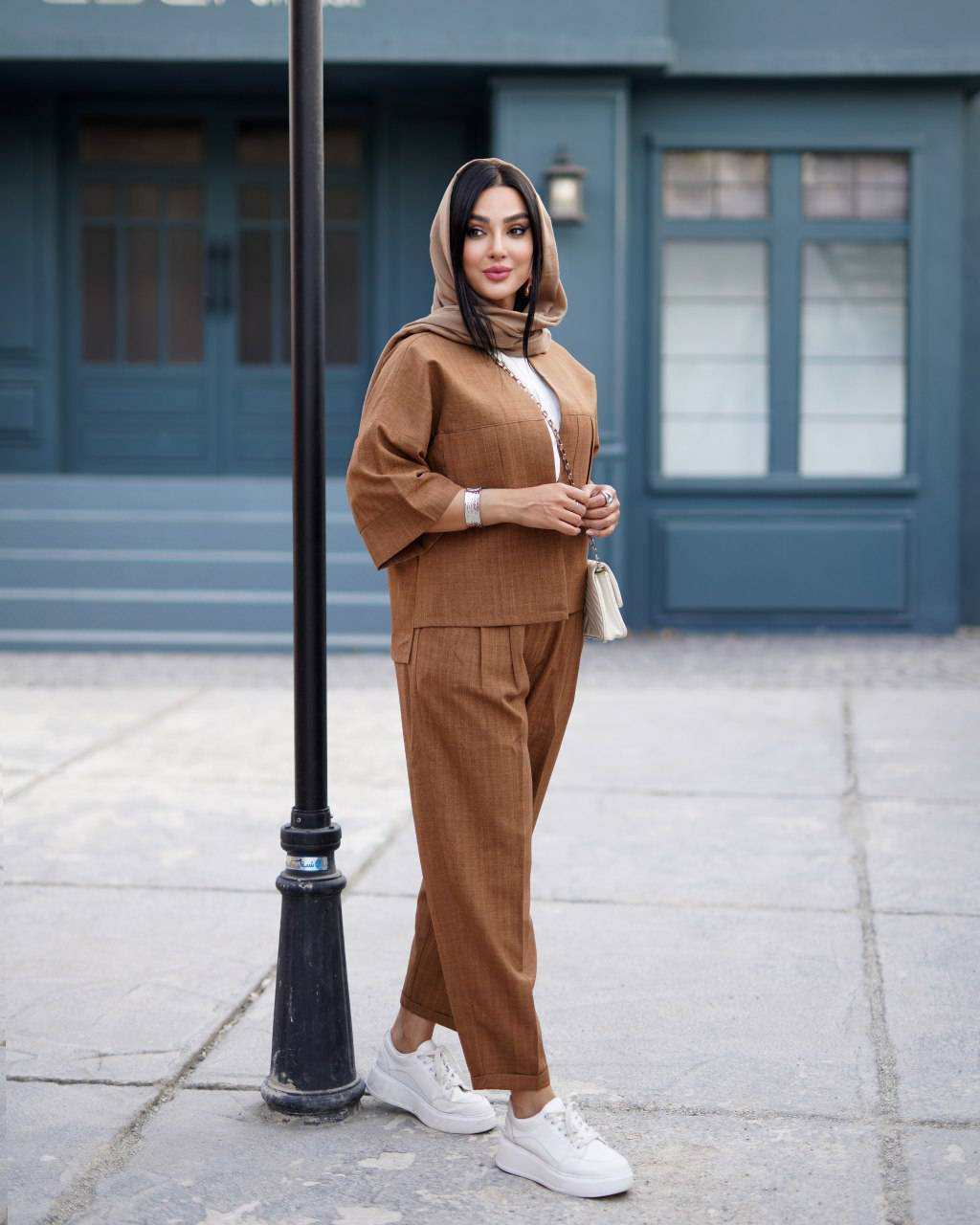 ⚜️جنس پارچه[ لنین شانتون سوفیا میله ای] بسیار سبک و خوش حالت