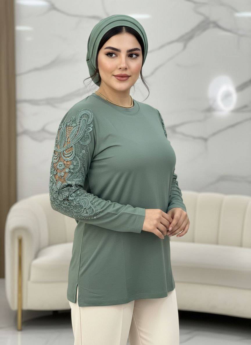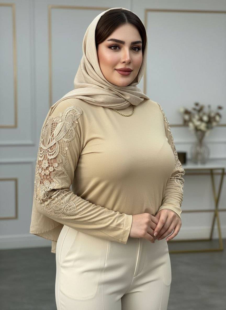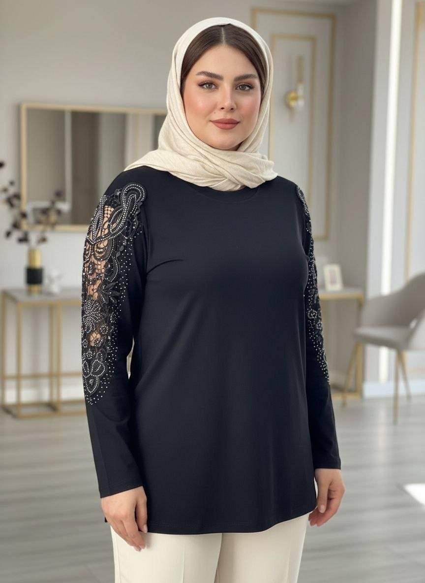 #شومیز گیپوری نگین دار 💫