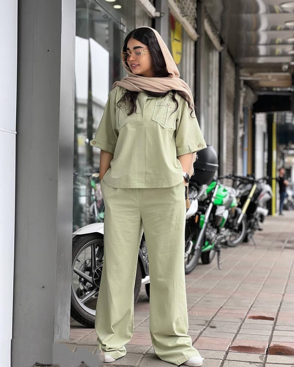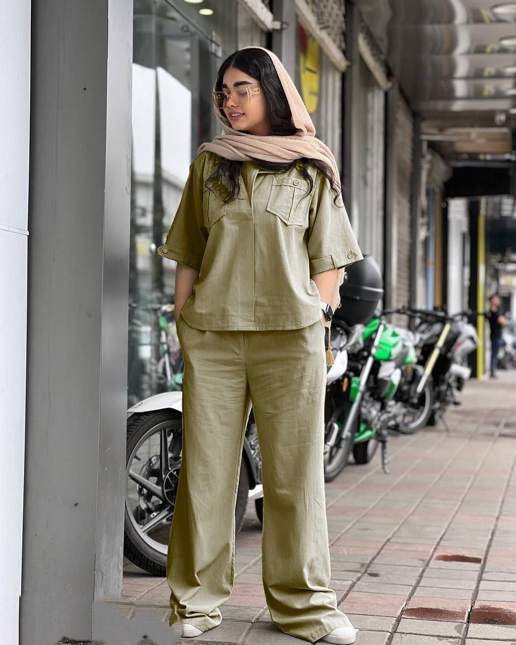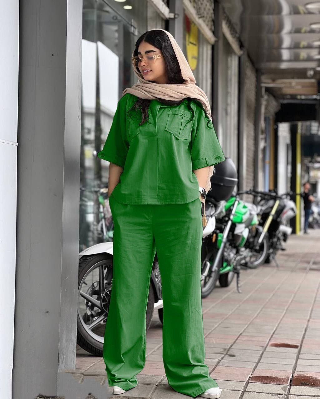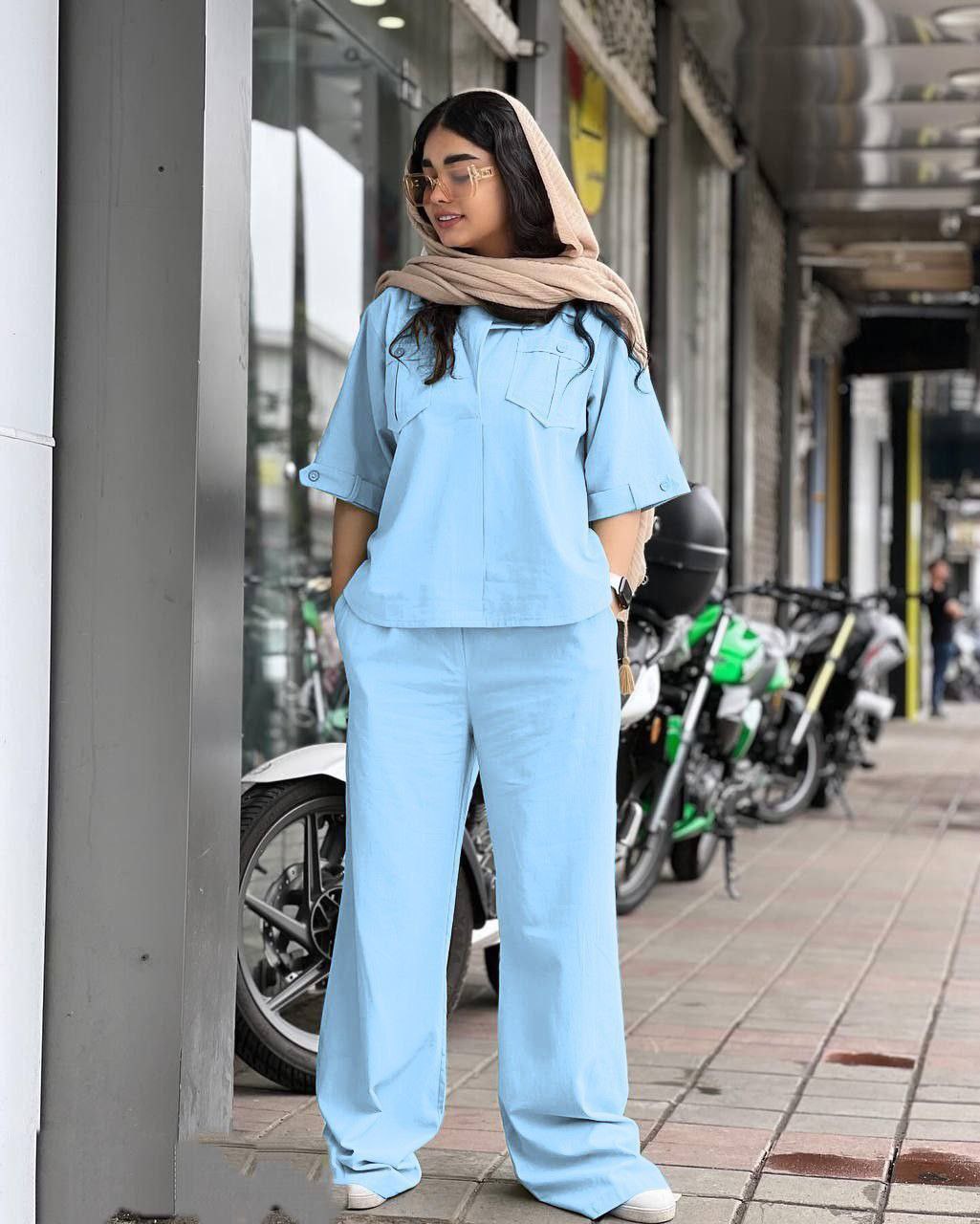 ست شومیز مانتویی دخترانه و شلوار بگ