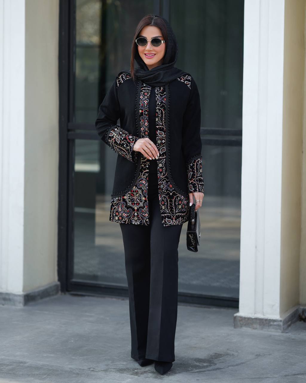 کالکشن محرم این مانتو ترکیب با مخمل سوزن دوزی نگین دوزی شده