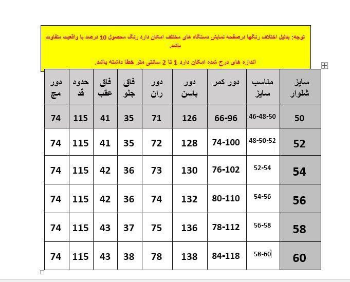 مدل کمرکشی هست ولی خود پارچه کشسانی ندارد و در چارت سایزی نهایت اندازه ها درج شده