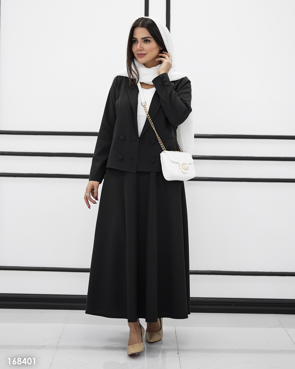 برای ایجاد ظاهری شیک و کلاسیک، کت دامن را با کفشهای پاشنهبلند (پاشنه کلاسیک یا پاشنهدار نوکتیز)، کیف دستی ظریف و زیورآلات مینیمال ست کنید. لوفرها نیز گزینههای مناسبی برای این استایل هستند.