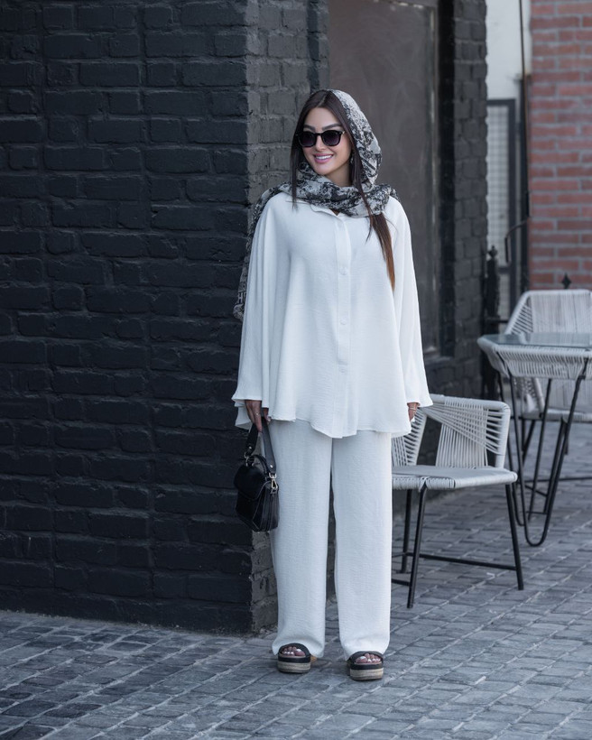 برای ایجاد هماهنگی بیشتر، میتوانید شال یا روسری با رنگ ساده و یکدست، یا جوراب و کفش همرنگ با مانتو انتخاب کنید.