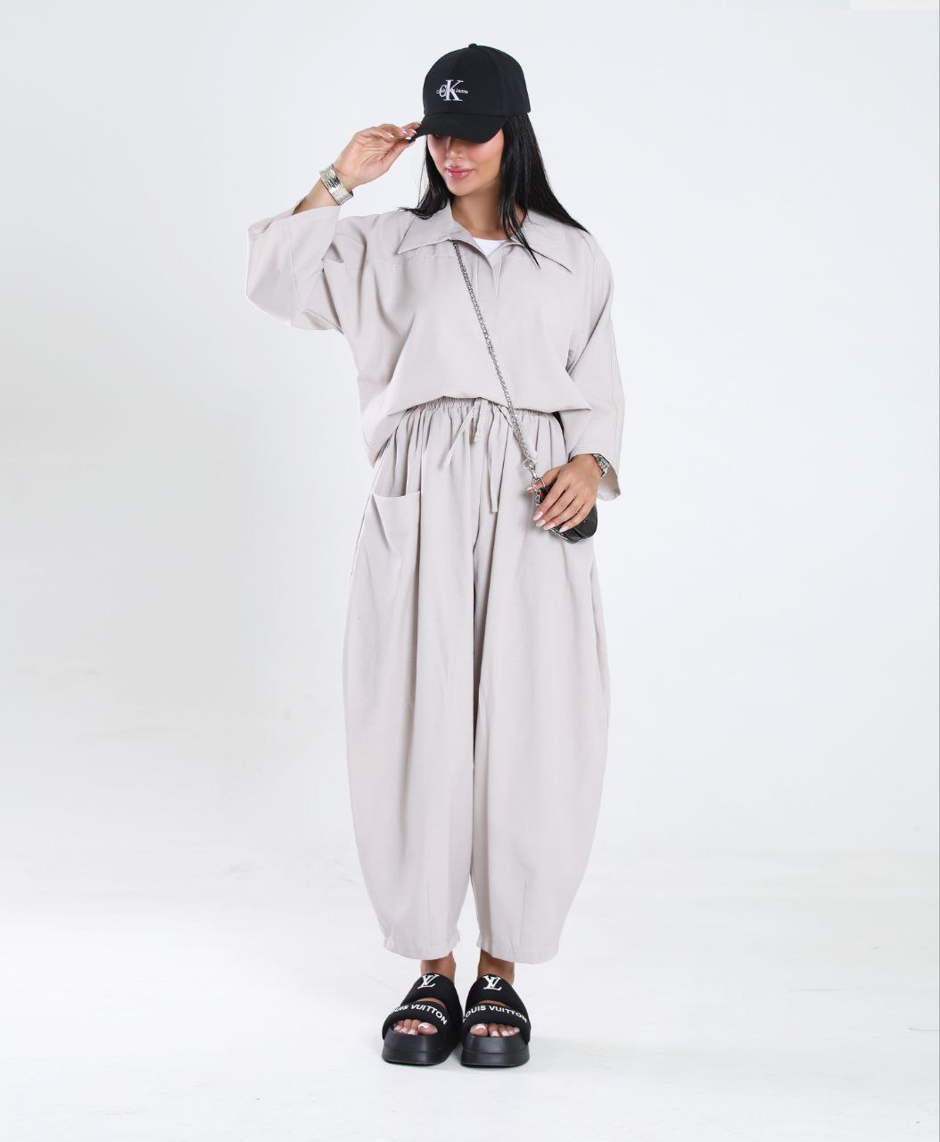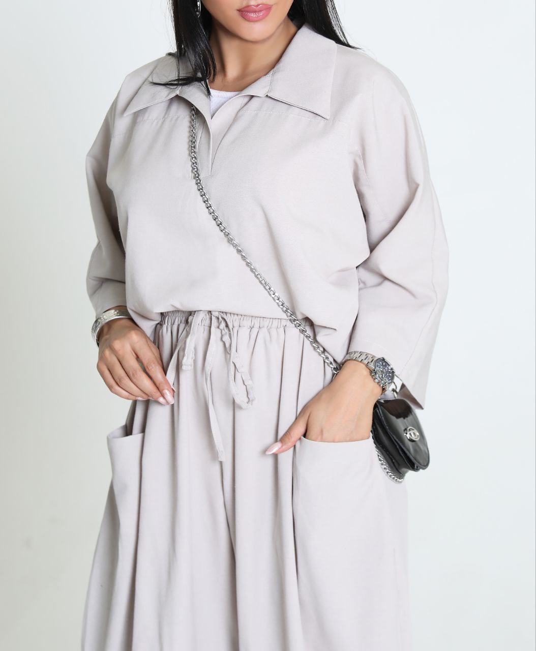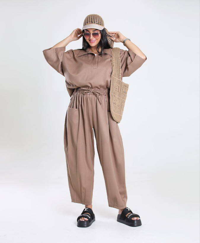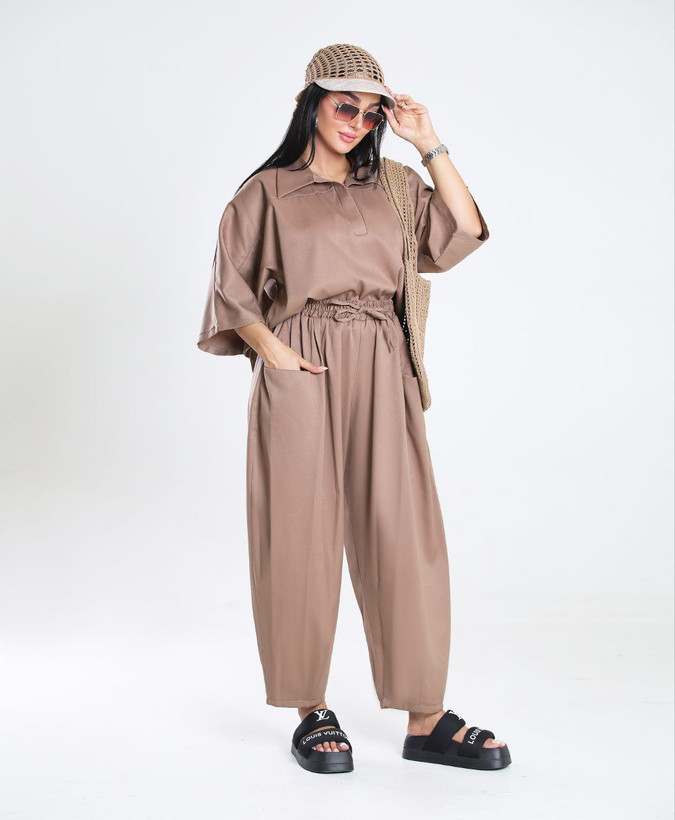استایل بلوز شلوار لنین به دلیل جذابیت بصری و راحتی، برای مهمانیها و دورهمیهای دوستانه بسیار مناسب است.