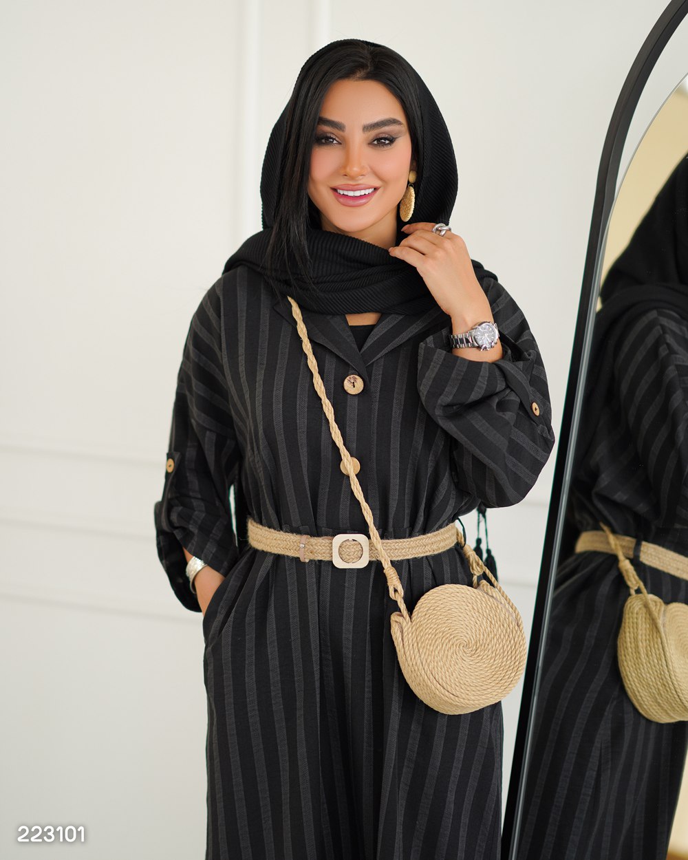 جیب کابردی_ آستین پاگون دار_کمربند دار_