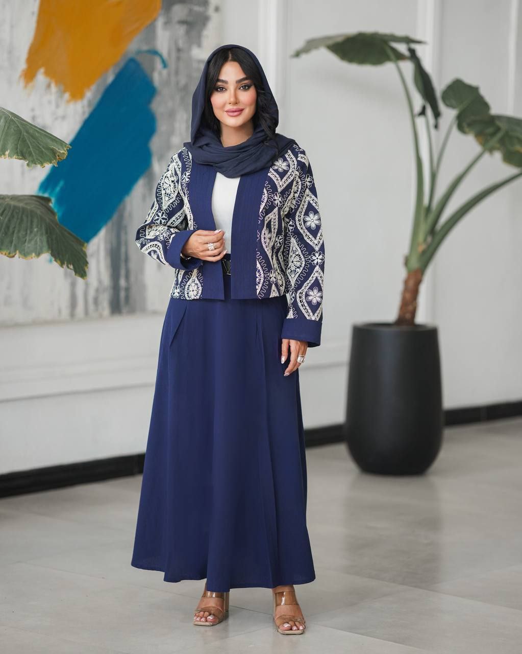 یه ست در فروش لاکچری مدل شایا کت دامن در سایز فری جنس پارچه کل کت قلاب بافی لنین هندی درجه یک و دامن لنین درجه یک
