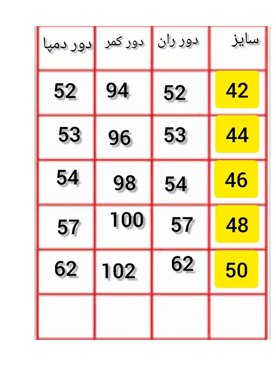 دارای سایز ۴۲_۴۴_۴۶_۴۸_۵۰ اندازه دور کمر با نهایت کشسان