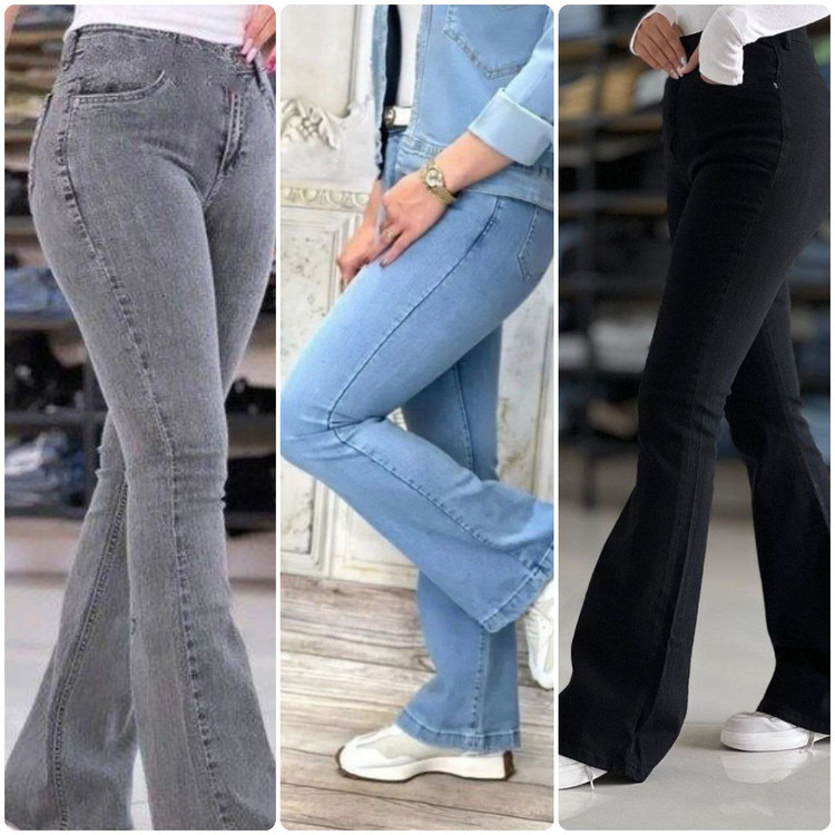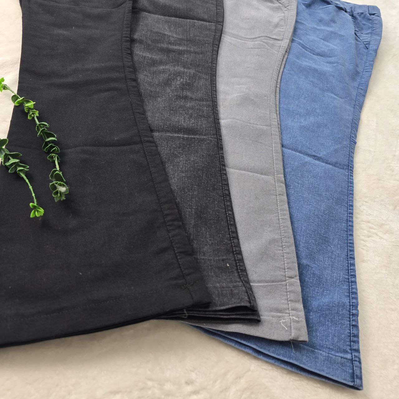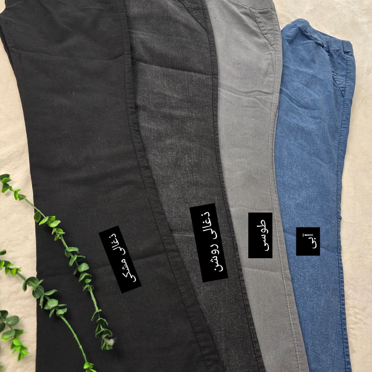 شلوار دمپا با جنس جین نیل گرم بالاو عالی تنخور شیک و بی نظیر دارای رنگ بندی ابی ذغالی روشن طوسی مشکی ذغالی