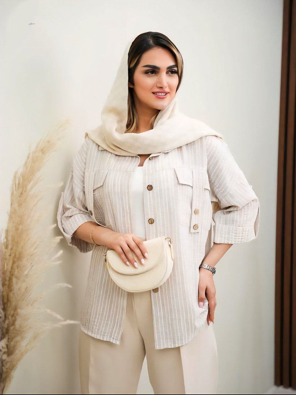 تونیک مانتویی دخترانه جیب صلیبی راه راه