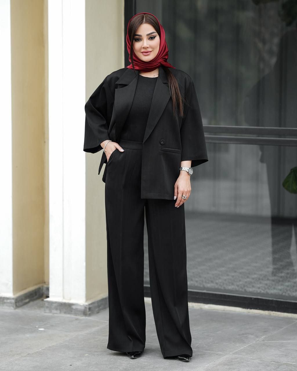 کت شلوار حلما جنس پارچه کرپ خنک درجه یک پیش کار لایی پرشین خورده مدل کت شلوار لش استایل دارای سایز۳۸تا۴۸