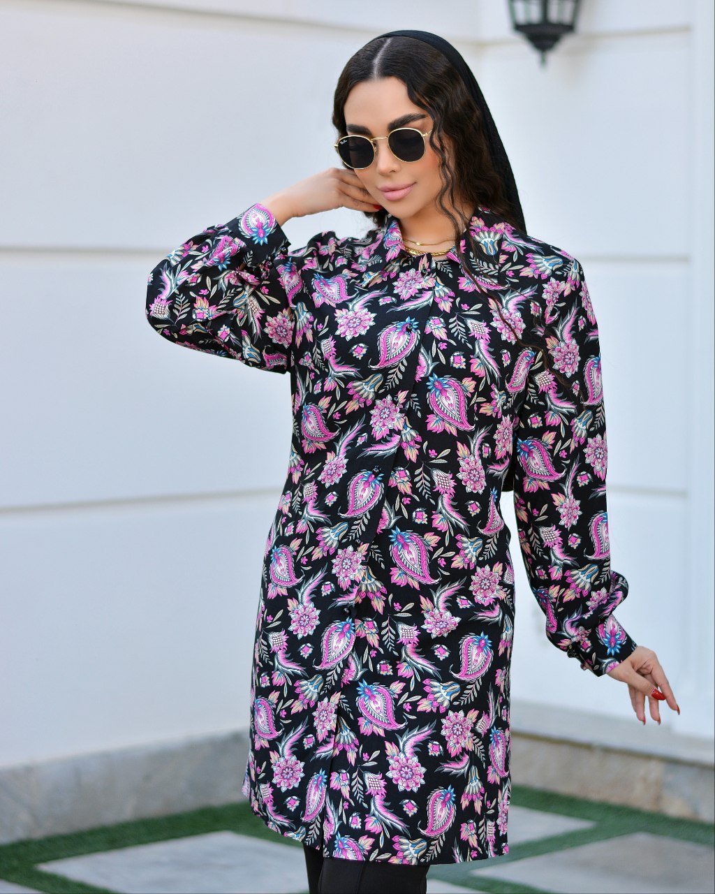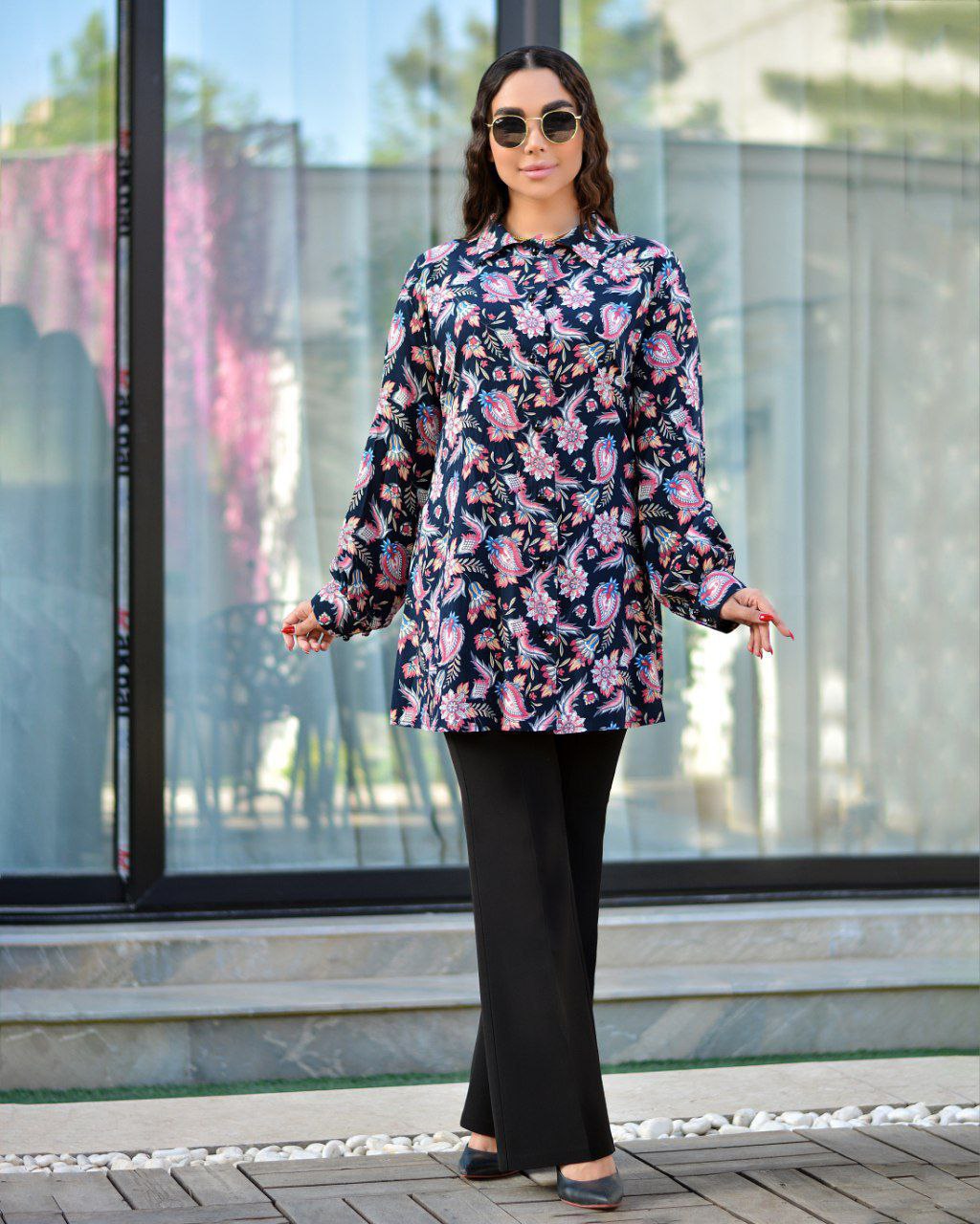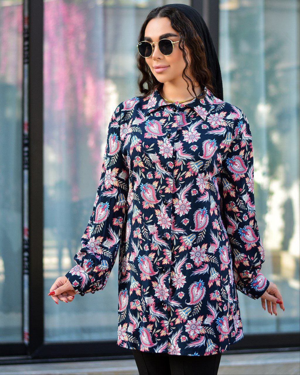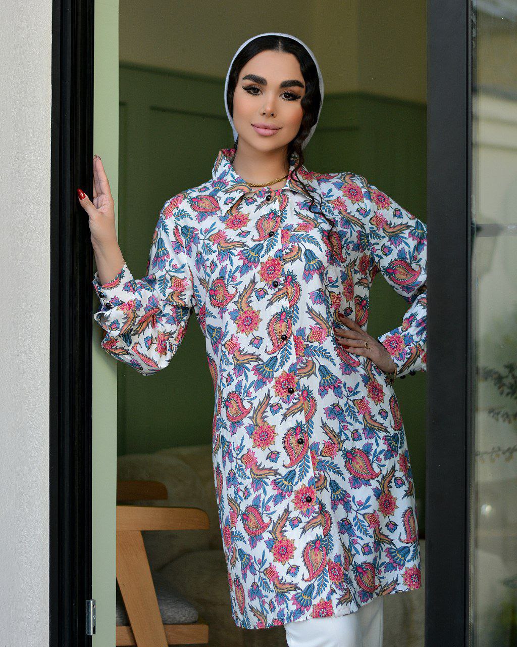 این شومیز از جنس کرپ نخ درجه یک سایز ۱ مناسب ۳۸تا۴۴ و سایز۲ ۴۶تا۵۲ است