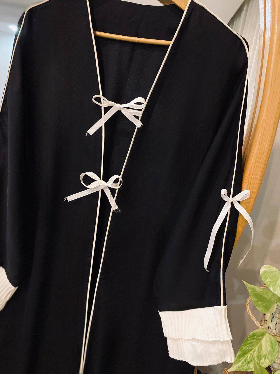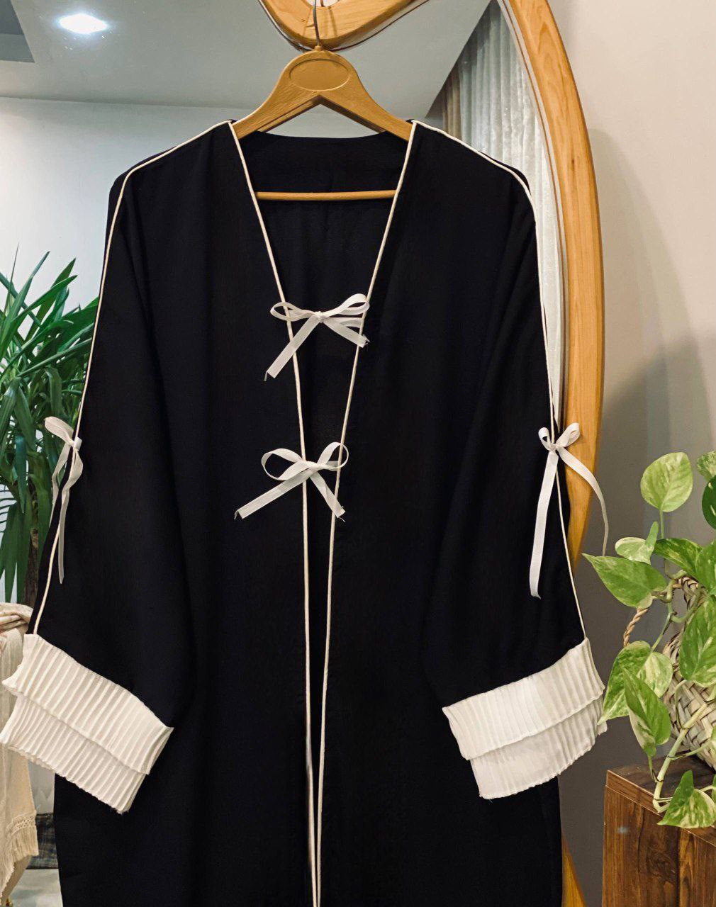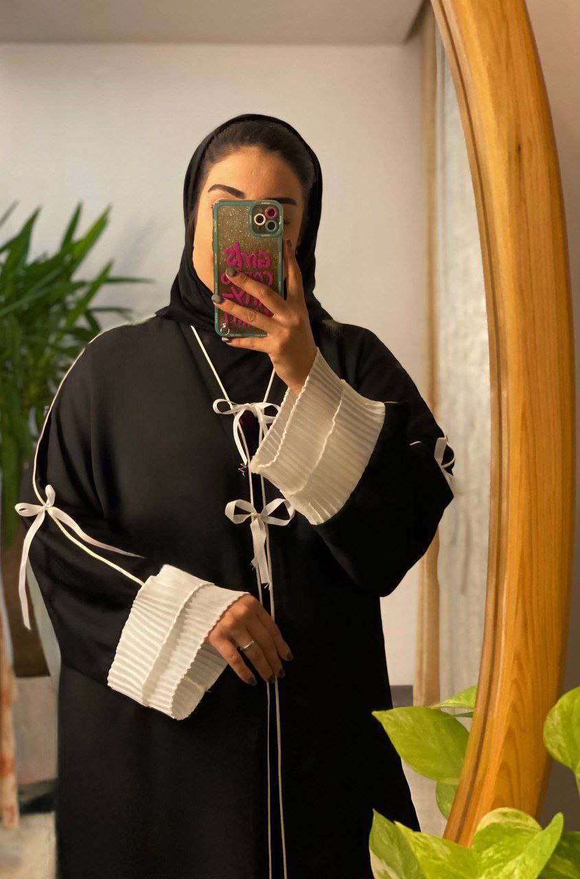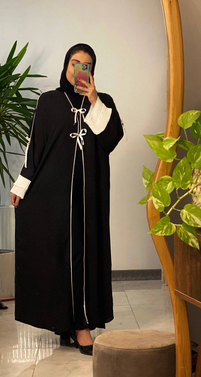 این مانتو بلند کاربردی که هم عبا برای مراسمات محرم صفر و هم مانتو شیک برای مجالس شاد و بیرون اونم با پاپییون های سفید و استین های کلوش و با کلی اکسسوری میشه استایل کرد