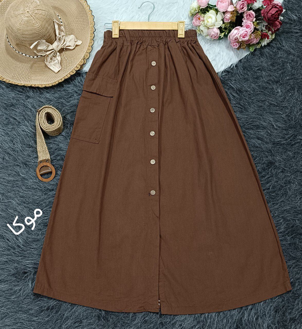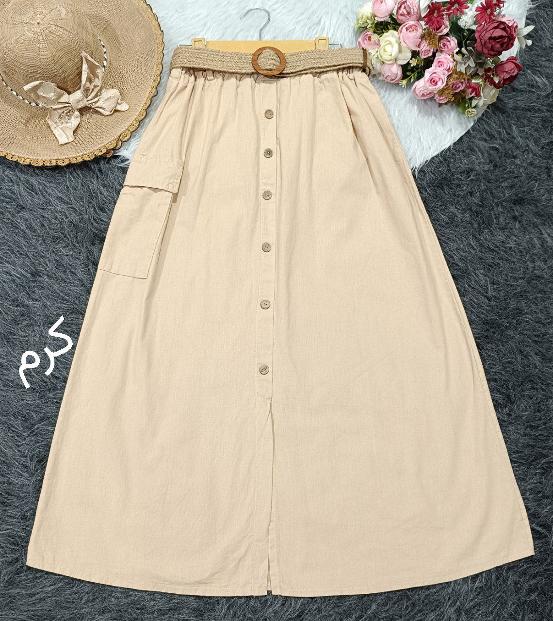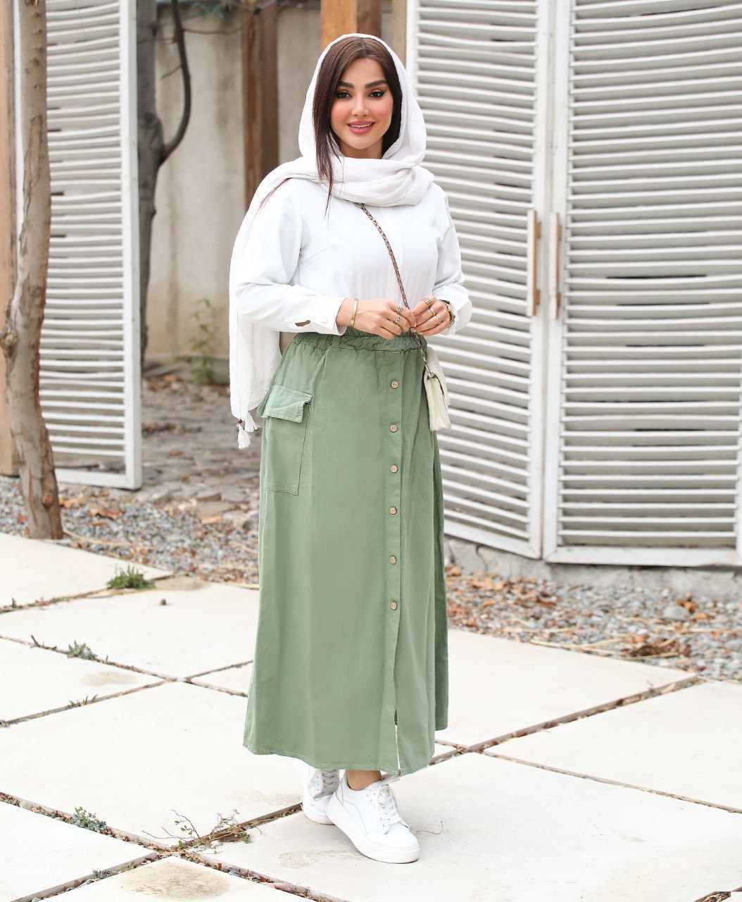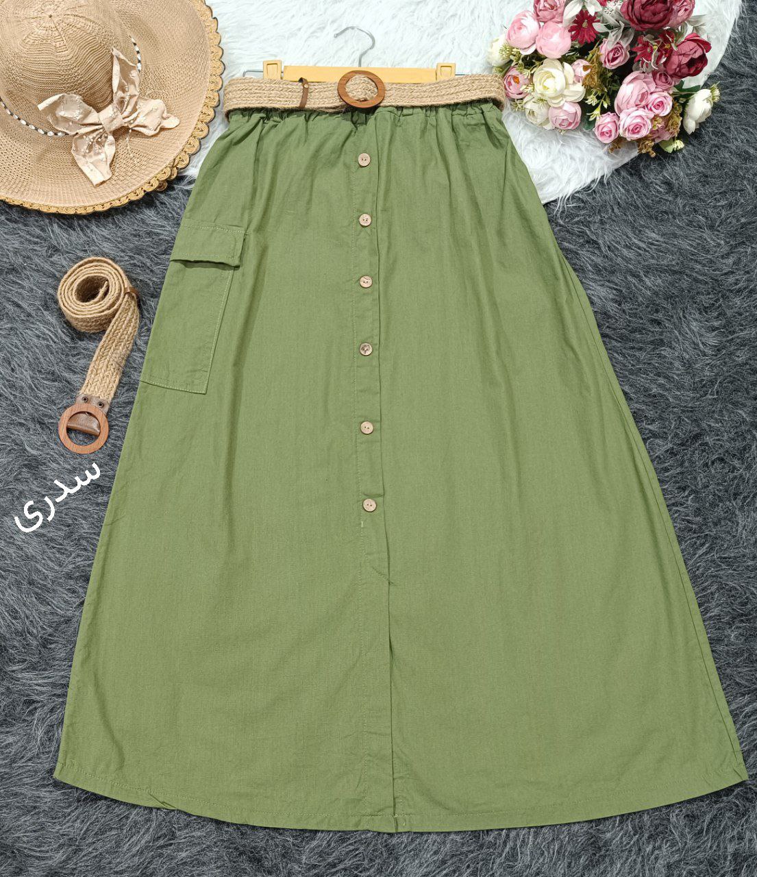 دامن دکمه جیب دار_استایل راحت شیک برای هرروز _جیب کاربردی و بزرگتر برای استایل خاصتر_دارای کمربند کنفی_