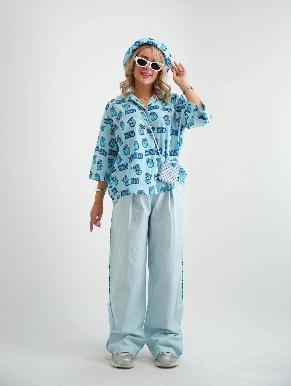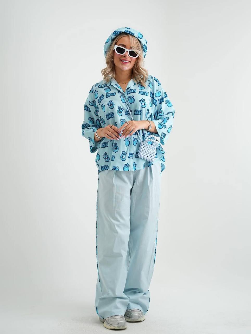 ست سه تیکه با طرحهای جدیدش دل همه رو میبره ست سه تیکه اوا شامل شومیز شلوار کلاه جنس شومیز سوپر سافت