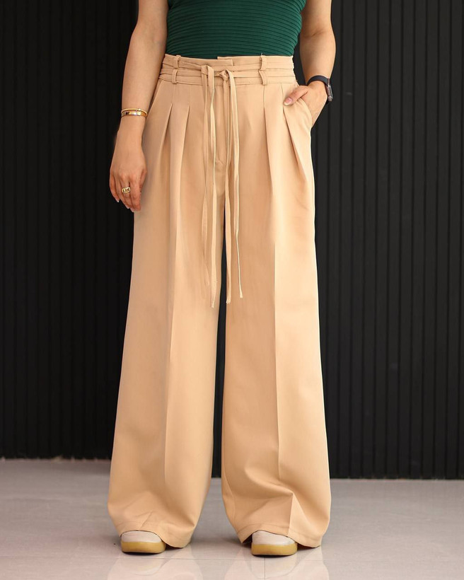شلوار مازراتی فول بگ دوپیله _پیله ها متناسب با سایز تنظیم شده و ایستایی مناسبی در ناحیه شکم ایجاد میکند تنخور آزاد و شیک مناسب استایل های روزمره و مهمونی جیب های کاربردی کمر کشی پشت برای آزادی بیشتر جلو زیپ و دکمه مخفی