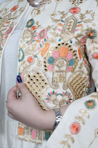 کت زنانه یقه گرد سوزن دوزی خرجکار هندی