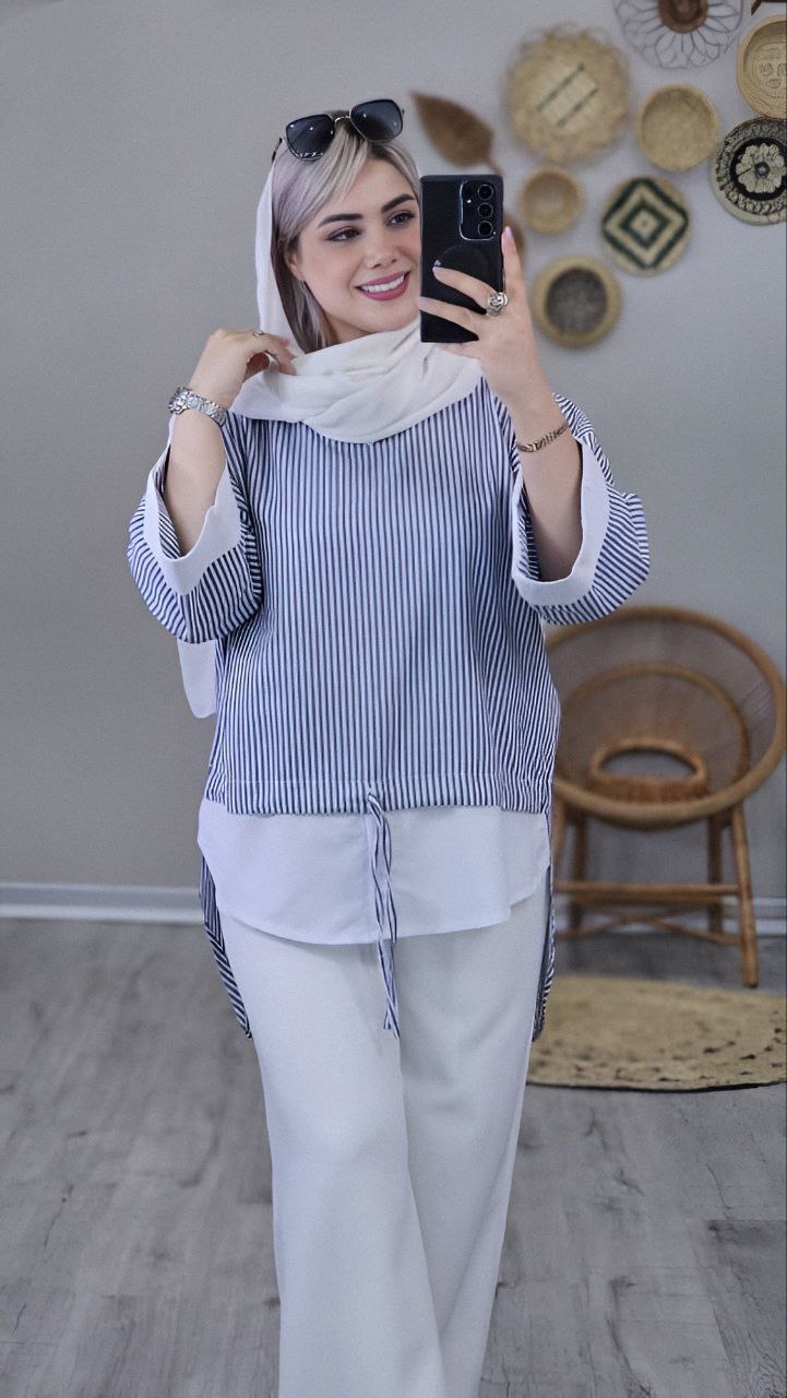 ناموجودتونیک مانتویی دخترانه جیب صلیبی راه راه
