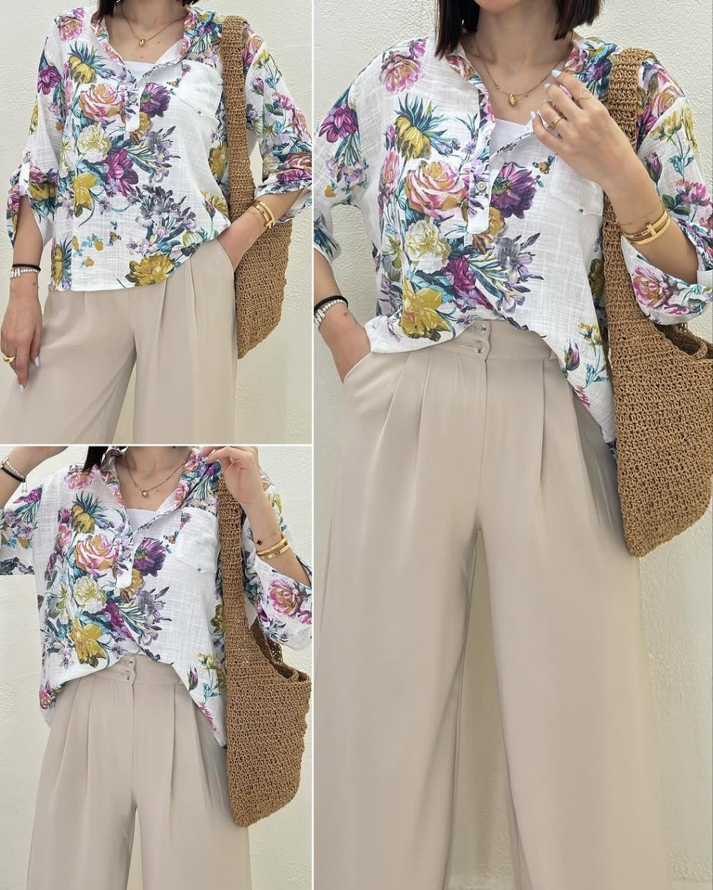 ناموجودشومیز مانتویی دخترانه طرحدار خنک پریس