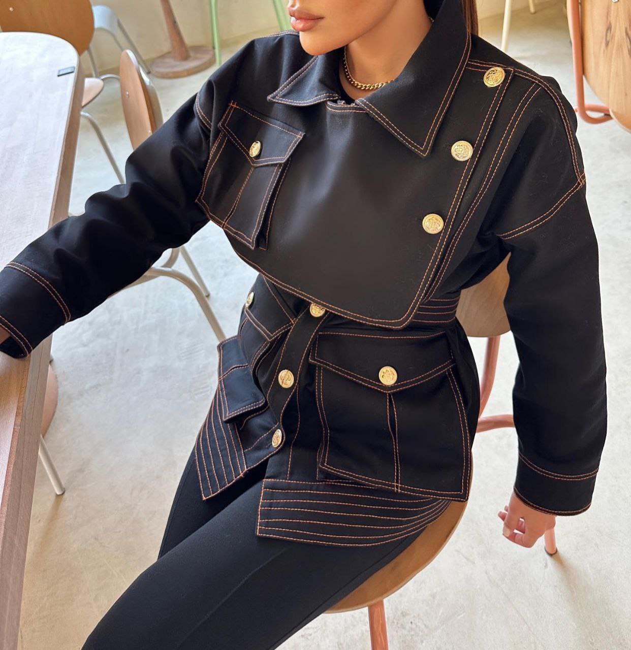 ناموجودپالتو فوتر دخترانه تک دکمه دوژیله مدل رویال