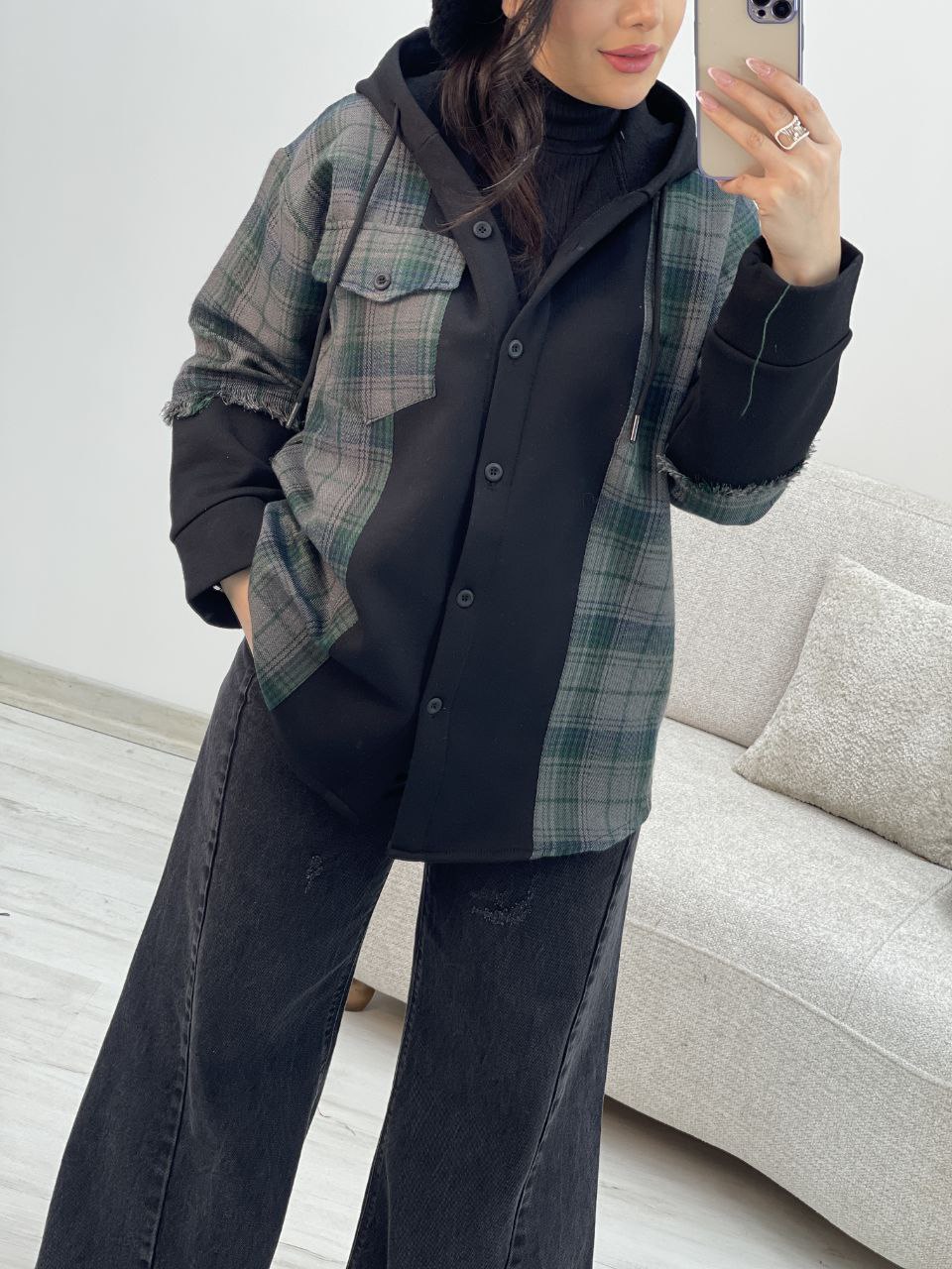ناموجودشکت زنانه چهارخونه بغل دکمه