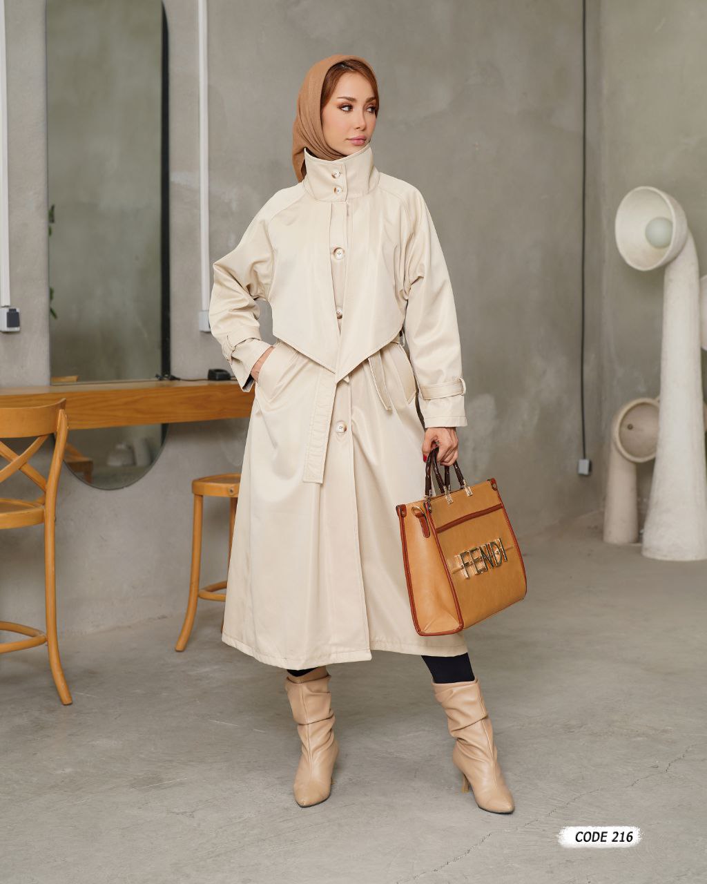 ناموجودکفتان زنانه پالتویی گندمی